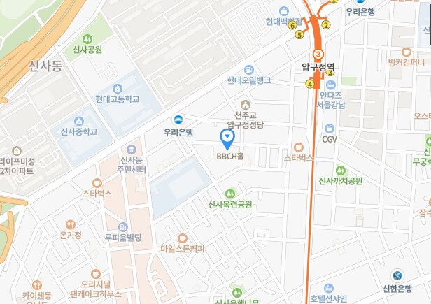 지하철 3호선 압구정역 5번 출구 (도보5분)