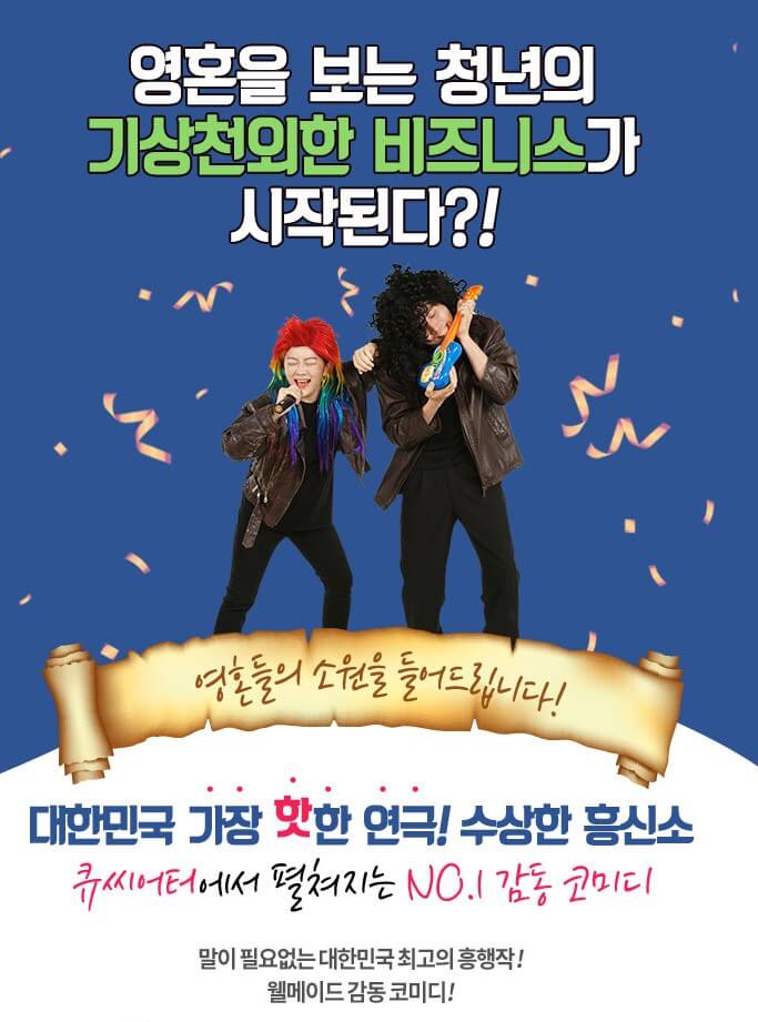수상한흥신소, 대학로 연극 재미와 감동이 한번에 느낄 수 있는 수상한 흥신소! 1편을 보지 못했어도 전혀 상관없습니다. 새롭게 리뉴얼이 된 연극이라고 생각하시면 됩니다. 영혼의 소원을 들어주는 흥신소! 흥신소에 소원빌러 가 볼까요~^^